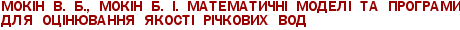 Мокін В. Б., Мокін Б. І. Математичні моделі та програми для оцінювання якості річкових вод